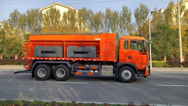 该款除雪车上装精准预湿型撒布机,具有精确撒布以及预湿撒布功能,撒布作业更加绿色环保。